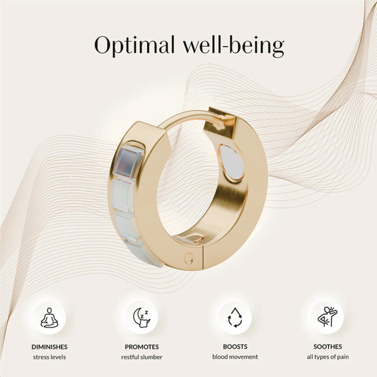 Experience the groundbreaking benefits of the Calmi ring. Designed as a piece of minimalist jewelry, it seamlessly integrates acupressure and magnetotherapy to naturally enhance your overall wellness and tranquility.